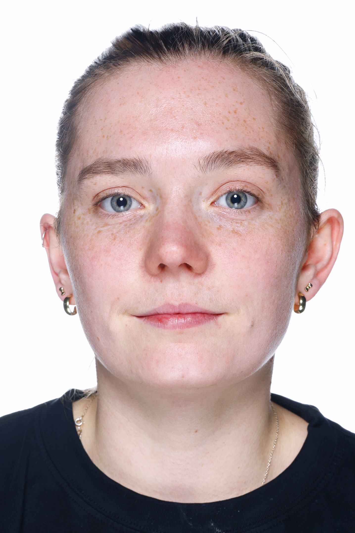 Du skal kigge direkte ind i kameraet med et neutralt ansigtsudtryk – uden smil eller åben mund.